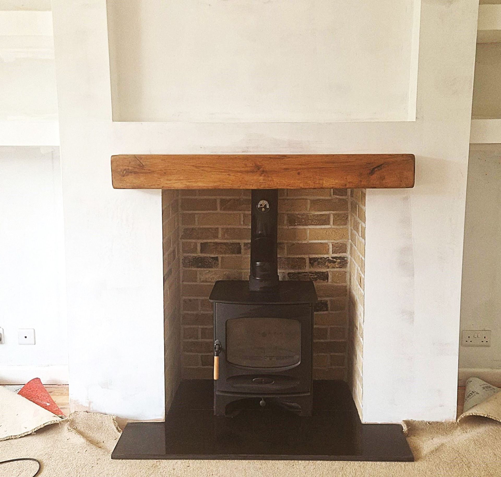 And here are some pics of a recent installation we undertook near Southampton, where we built in a recess for a television and shelving between the breast and adjacent wall.